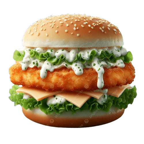 Breaded or Grilled ,100% Beef Burger, Freshly Ground, Daily.